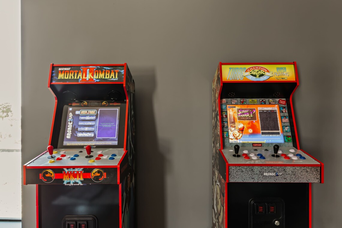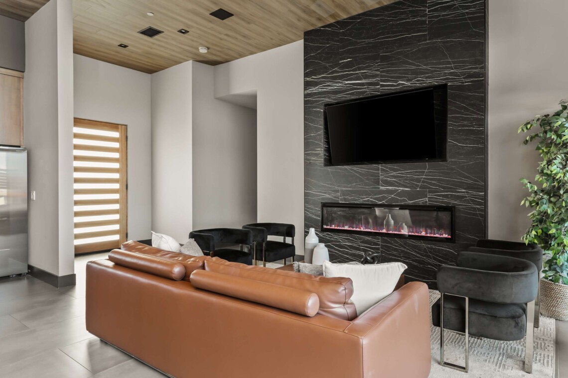 – Electric fireplace for cold nights.
